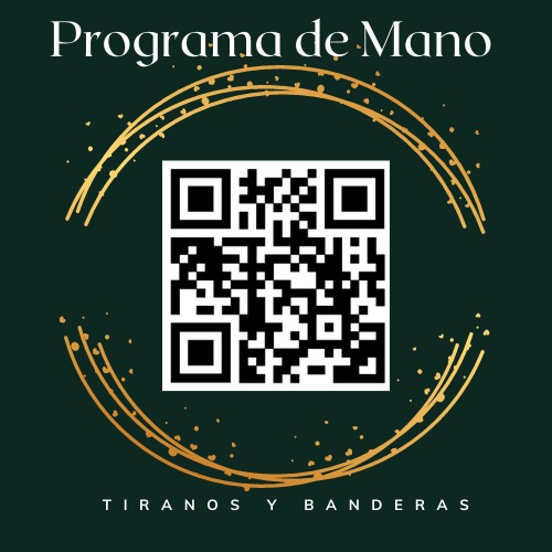 Encuentre en este QR el programa de mano de *Tiranos y banderas*.