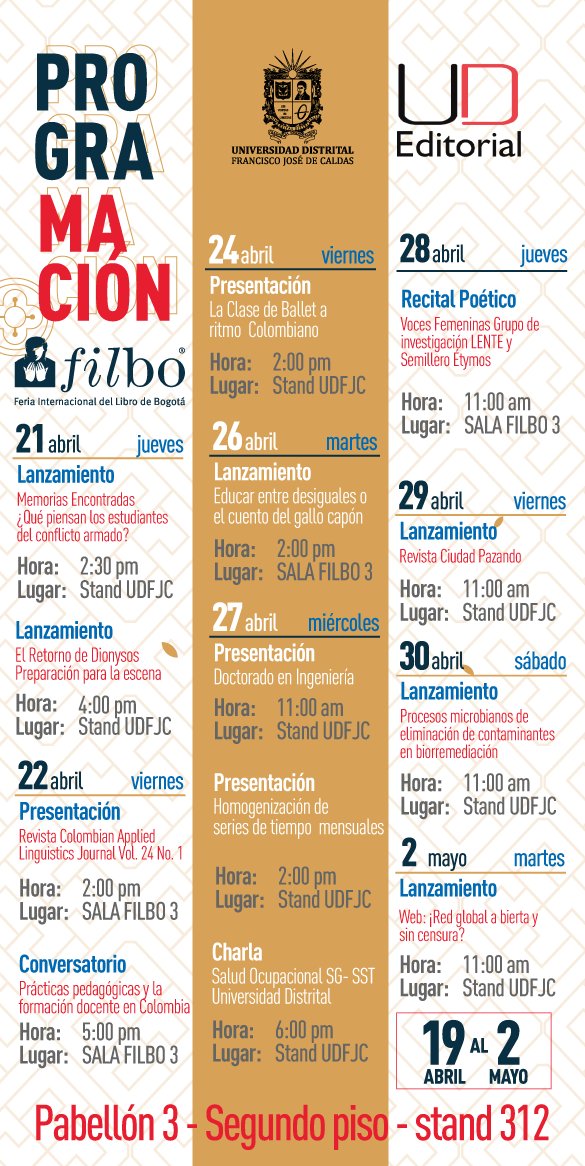 Igualmente, adjuntamos toda la programación de UD Editorial en la FilBo,