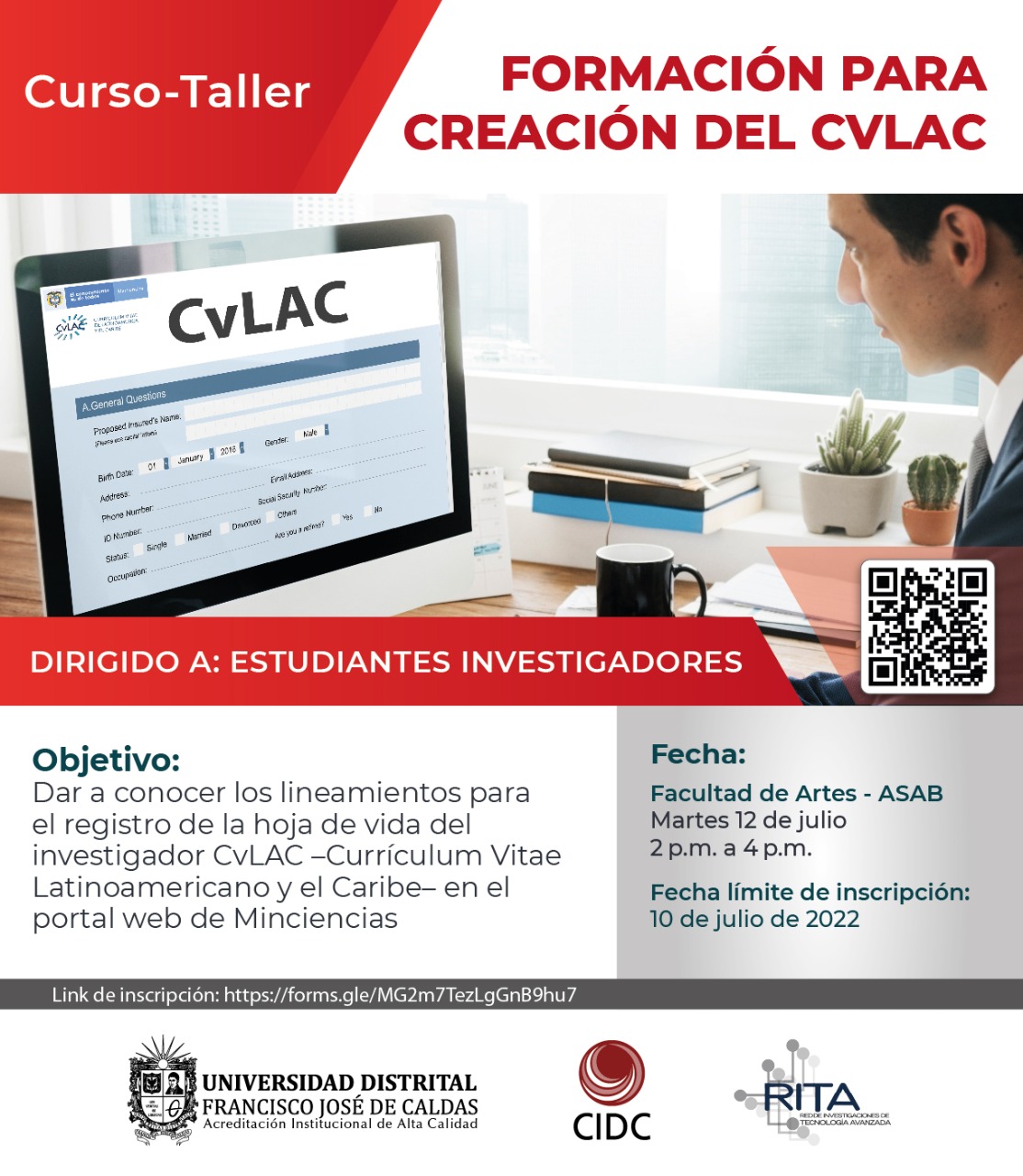 CvLAC", el cual se hará el próximo martes 12 de julio, a partir de las 2:00