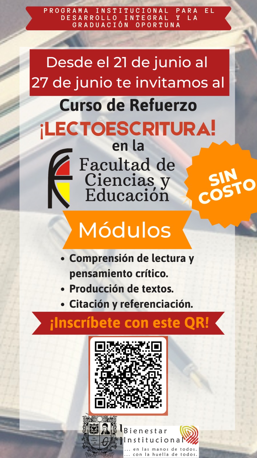 Como parte de lo programado en los cursos de refuerzo se impartirán también temáticas de Lecto-Escritura en la Facultad ASAB y Facultad de Ciencias y Educación de manera presencial.